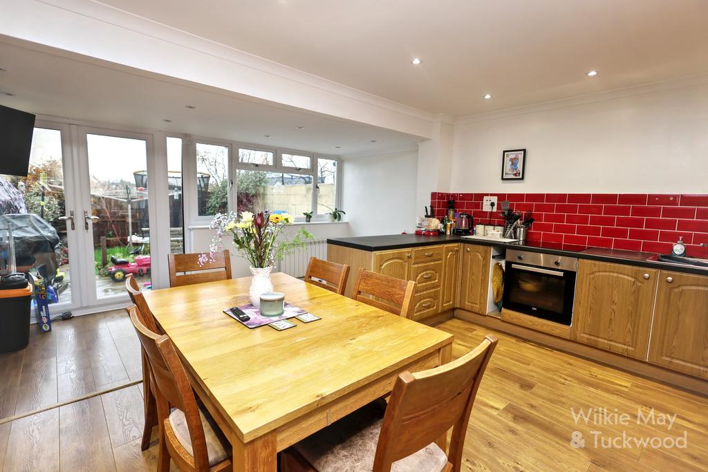 To the rear of the property there is a spacious kitchen/dining/family room which has been extended, with a beneficial range of kitchen units, and has ample space for a dining room table and soft furnishings to make a family room with rear door access to the garden.