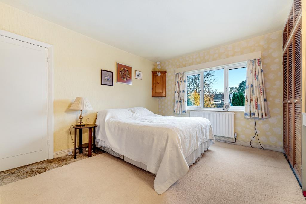 Double bedroom. Carpet flooring. Sink with fitted cupboards and wardrobes. Two wall lights. Double glazed unit to rear with opener. Single panel radiator. Pull-down loft hatch.