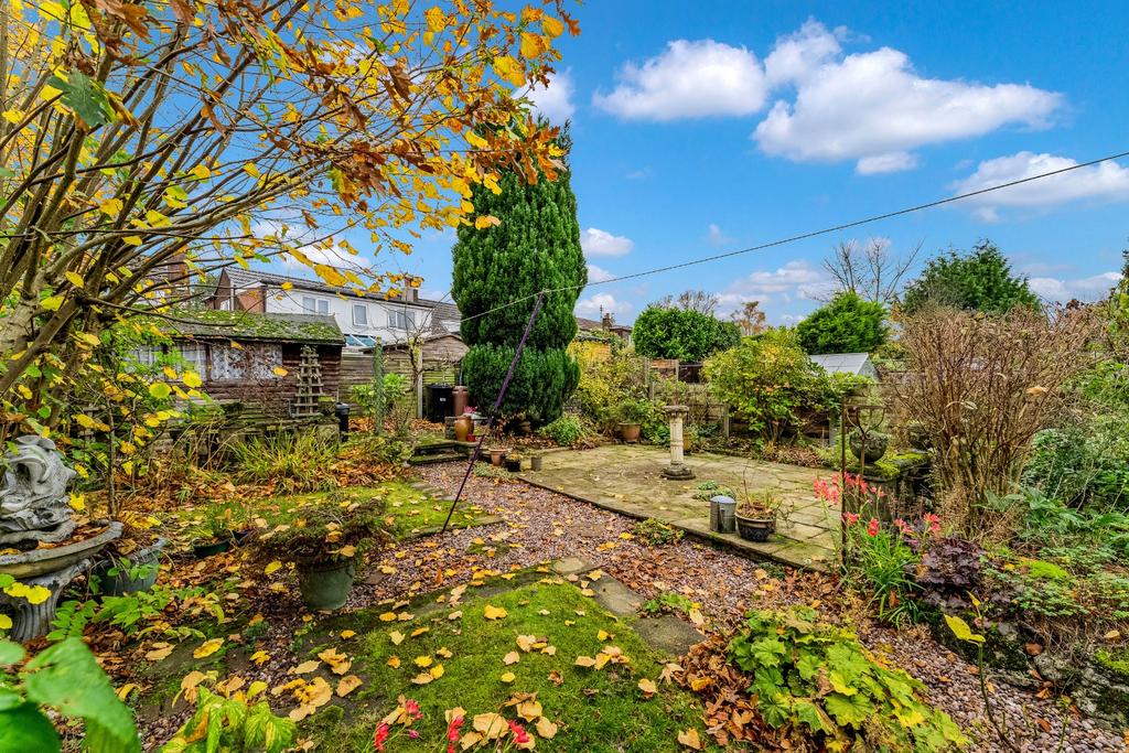 Externally, the rear garden is perfect for family life, offering a flagged patio area, low-maintenance mature planting, hose pipe connection, and three storage sheds. Fencing and a side gate provide privacy and security.