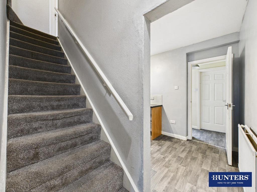 Landing - Stairs up from the ground floor dining kitchen, and internal doors to two bedrooms.