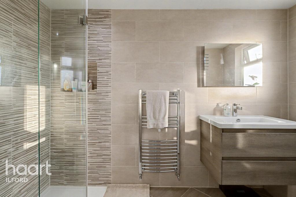 The garden has been designed with busy family life in mind: low maintenance, sun-filled, and ready to enjoy. A generous patio is perfect for summer BBQs and outdoor dining, while the artificial lawn provides a safe play area for children. Side access leads to the front, where you’ll find parking for two cars and the convenience of an EV charging point. At the back of the garden sits a large detached garage with an electric roller shutter—ideal for storing bikes, prams, sports equipment, or even transforming into a home office, gym, or creative space. It also benefits from rear vehicle access via Wanstead Lane.