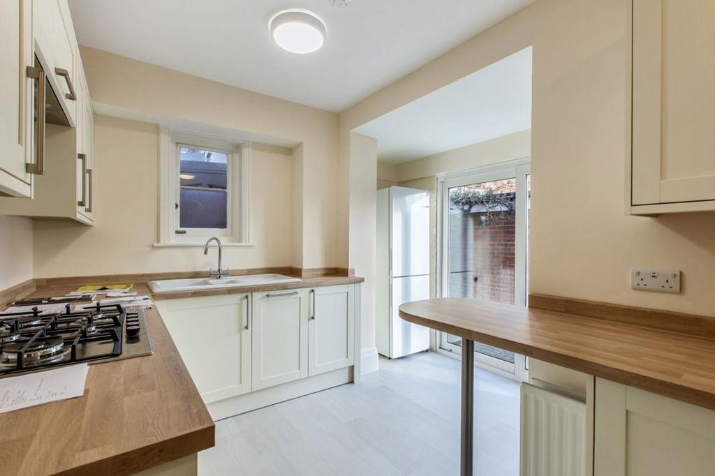 Spacious and well-presented, this 3/4 bedroom ground floor apartment offers flexible accommodation with a mix of character features and modern updates. The newly fitted shaker-style kitchen includes cream units, wooden effect work surfaces, a gas hob, integrated oven and fridge freezer, with patio doors leading directly to the communal parking area.