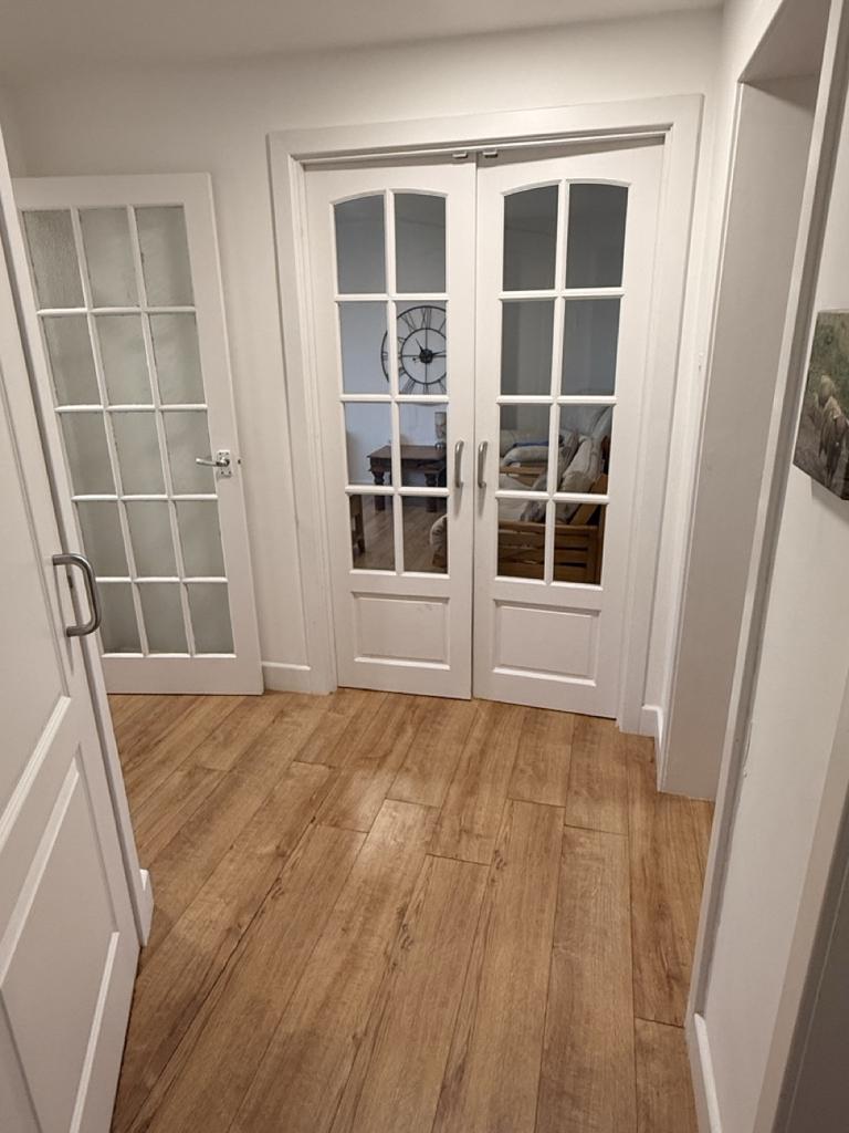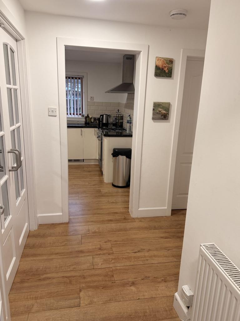 Coat hooks. Laminate flooring. Glazed door opening to: