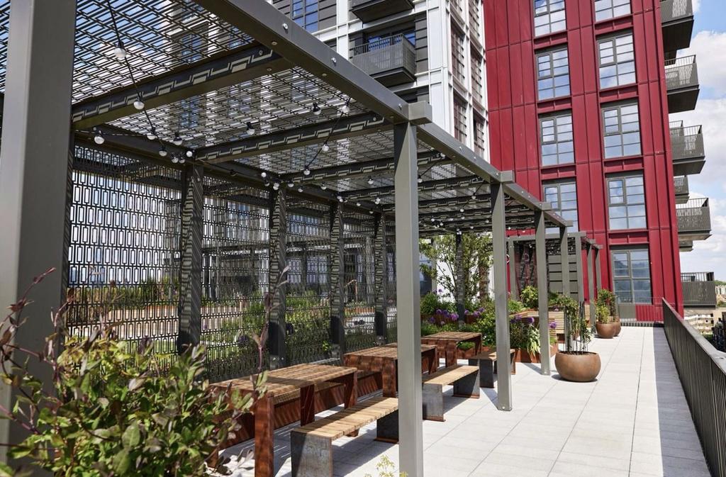 Residents benefit from a host of premium amenities, including a dedicated concierge service, an inviting lounge, and beautifully landscaped podium terraces – tranquil green spaces perfect for outdoor work or relaxation. On-site leisure facilities abound, with a high-specification gym, swimming pool, exercise studios, and a selection of sports courts close by. Secure, residents-only parking and cycle storage further support an active, connected lifestyle.
