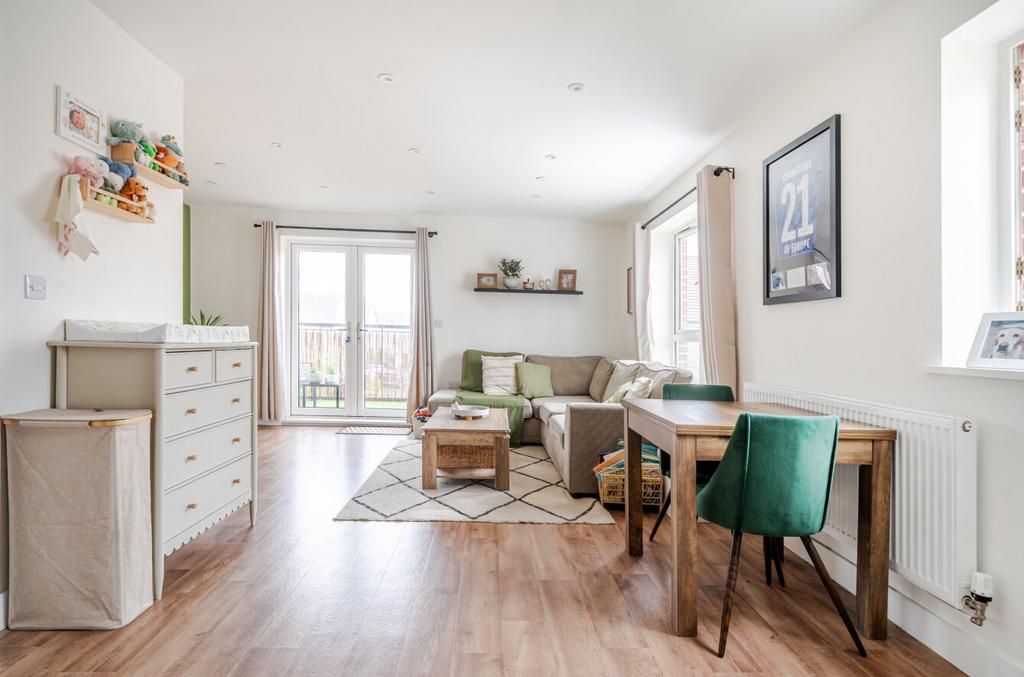 SHARED OWNERSHIP (Advertised price represents 40% share. Full market value £240,000). A spacious and smartly-presented flat on the first floor of this recently-constructed development. The property has a dual-aspect reception room with double doors that lead out onto a south-facing balcony. The semi-open-plan kitchen features sleek, white units, tiled splashbacks and integrated appliances. There is a generously-sized bedroom, a simple yet stylish bathroom and a pair of built-in storage/utility cupboards have been provided in the entrance hall. Well insulated walls, high performance glazing and a modern gas central heating system make for a very good energy-efficiency rating. To the rear of the block is a parking area which includes a space allocated to this flat. Anna Sewell Way is close to Havenstoke Park and only a brief drive, or bike ride, from the city centre.