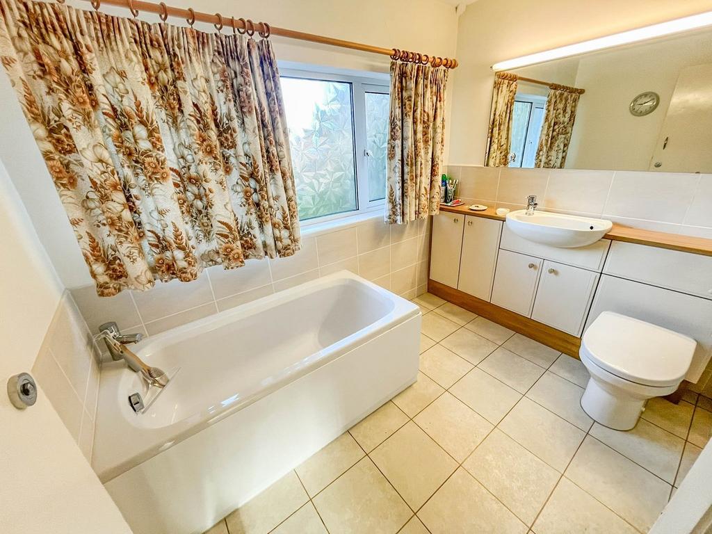 The property is set over two floors and in brief, comprises of a centrally located entrance hall with storage cupboards and a dog leg staircase rising to the first floor landing. The part tiled ground floor cloakroom/w.c. is fitted with a wall mounted vanity unit with inset wash hand basin and low level w.c. The lounge has sliding patio doors opening onto the rear garden and folding doors through to the dining room. The Upvc double glazed conservatory is accessed via sliding patio doors off the dining room and has French doors opening onto the rear garden. The fitted kitchen has a tiled floor with access into the car port that has an electric front door and remains open to the rear. There is a study with a bow window and internal door through to the garage.