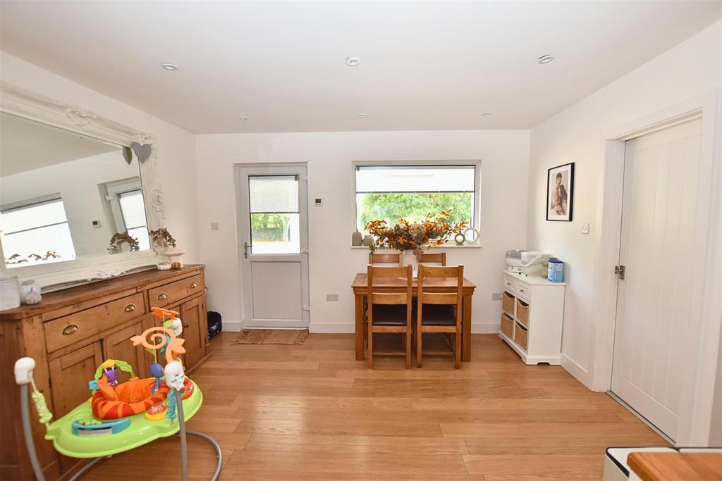 Dining Room - 4.57m x 3.81m (15' x 12'6") - PVCu sealed unit double glazed bi-fold door to patio garden, French doors and side lights to rear, lantern light roof, tiled floor, underfloor heating.