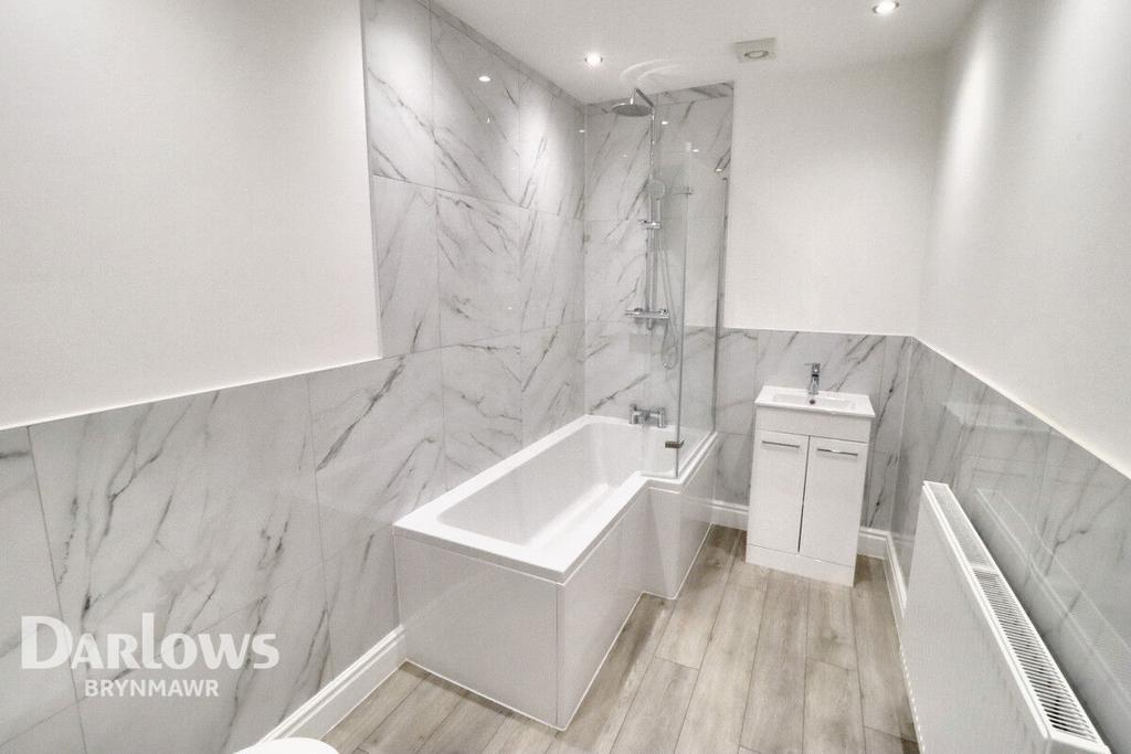 panel bath with shower over, low level WC, vanity wash hand basin, radiator.