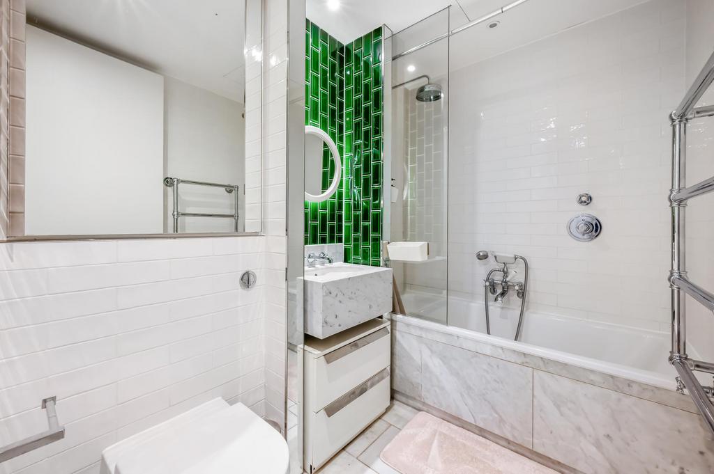 The property is compromised of, an open plan reception room with a smart integrated kitchen, plenty of storage, two modern ensuite bathrooms and a separate W.C. The property features stunning interiors with wooden parquet flooring, and marble counter tops.