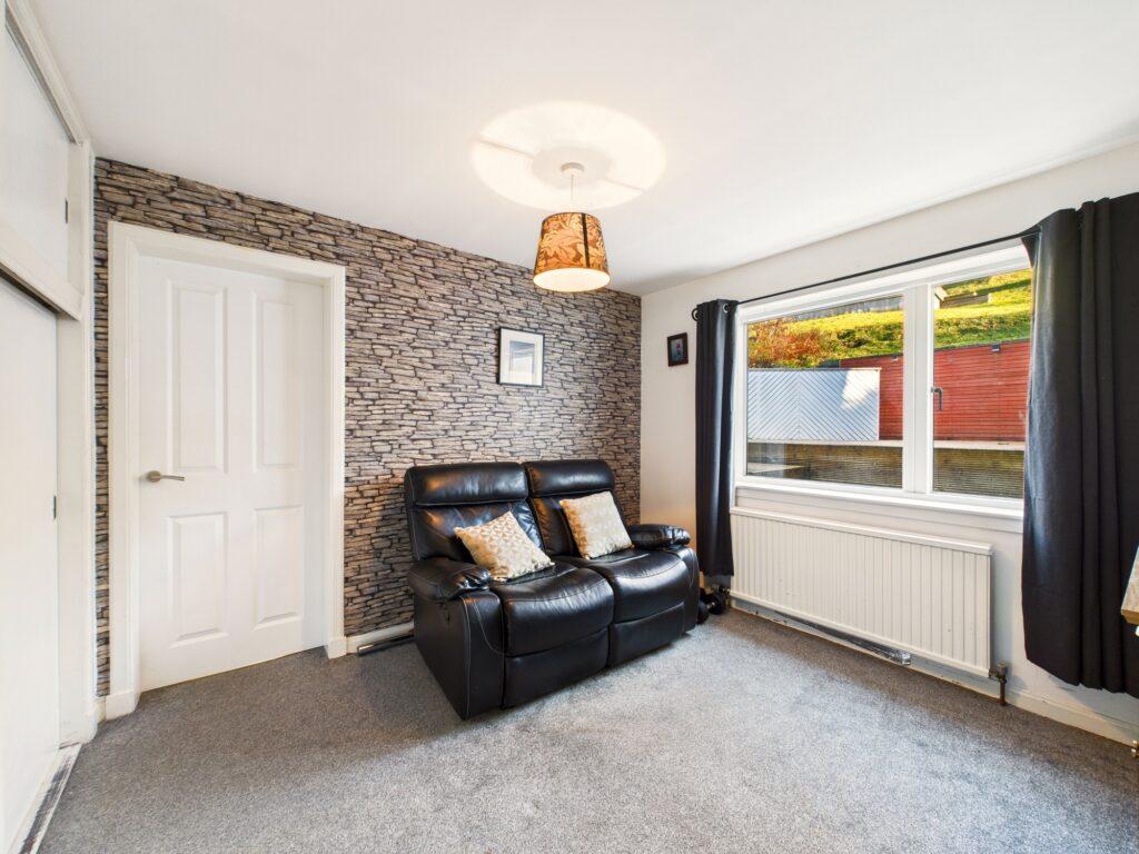 Impressive lounge with dual aspect elevated views towards the harbour with The Firth of Lorne set in the distance. Plenty of room for lounge furniture, attractive open fire set in stone fireplace with timber mantle. Carpeted flooring, twin central heating radiators and pendant lighting.
