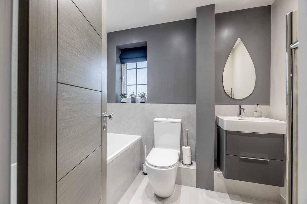 Upstairs, there are four well-proportioned bedrooms. Bedrooms two and four overlook the rear, with bedroom two offering built-in storage around the bed, while bedroom three is front-facing with sliding wardrobes. These bedrooms are served by a family bathroom comprising a bath with shower, WC, sink, and heated towel rail. The principal bedroom is a standout, offering a generous layout with bespoke wardrobes, a dressing area, and a stylish en-suite with shower, WC, basin, and heated towel rail.