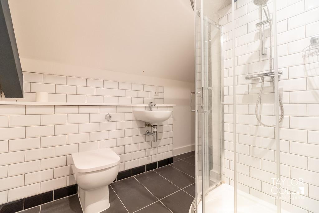 - Spacious top floor bedroom with skylights and en suite style shower room