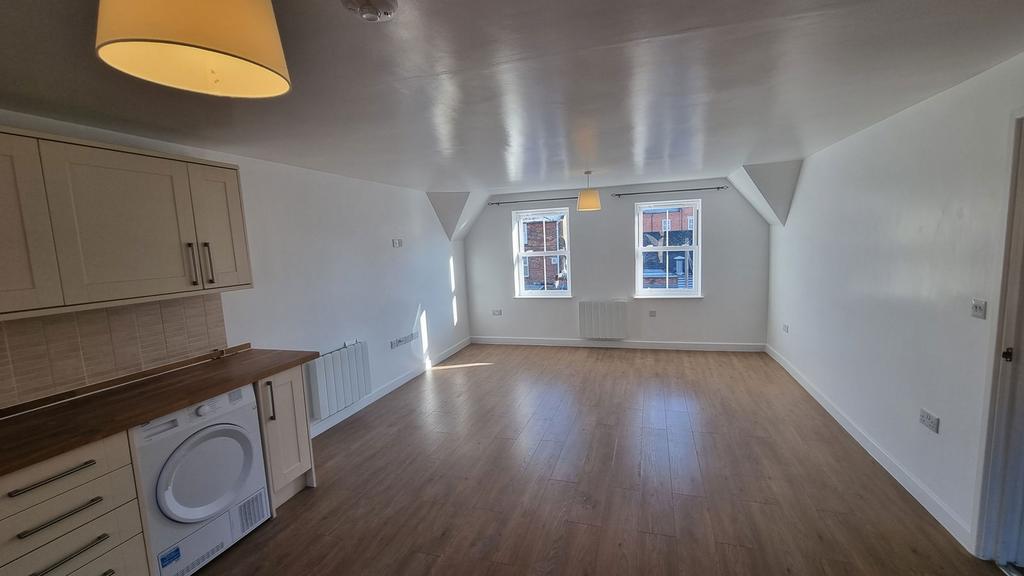 Open-plan Lounge/Kitchen Area: Wooden laminate flooring throughout. Double glazed windows to front and rear aspect. Electric panel heaters to wall. Kitchen area: Wooden laminate flooring throughout. Wooden worktop. Electric cooker and hob. Integrated washing machine and tumble dryer. Extractor fan to wall. Tile work surround. Stainless steel sink unit. Range of wall and base units