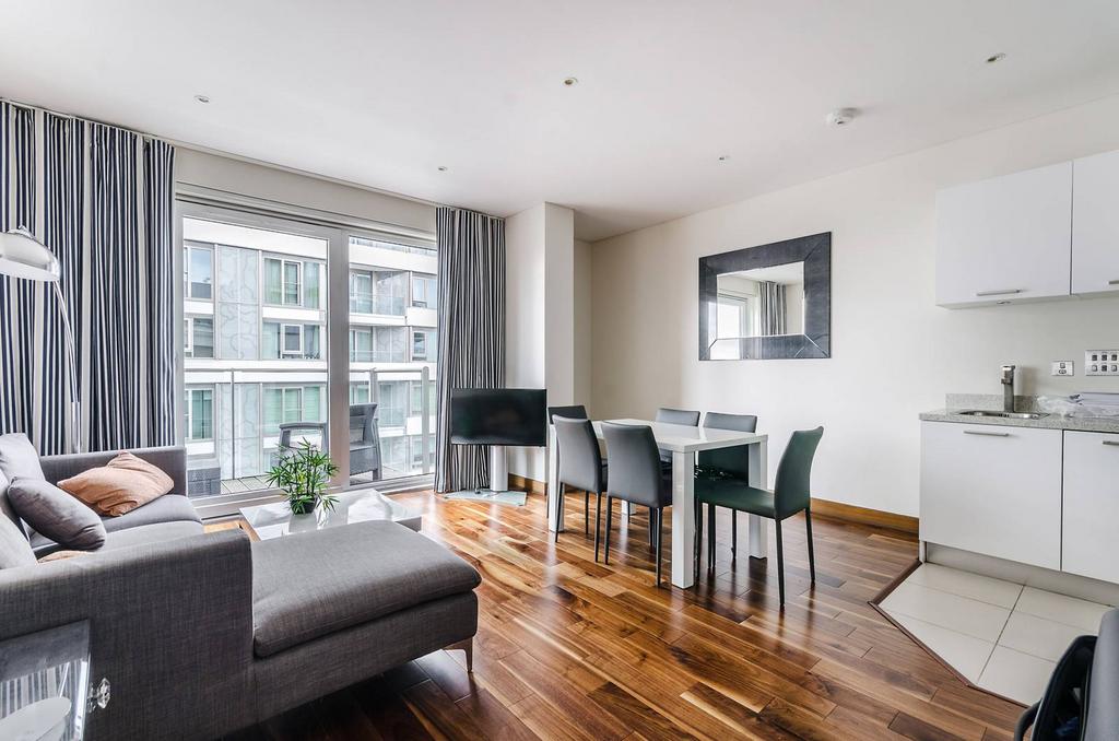 Featuring views over Battersea Park from its two private balconies, this stunning one bedroom apartment offers stylish living space within the sought-after Chelsea Bridge Wharf development.