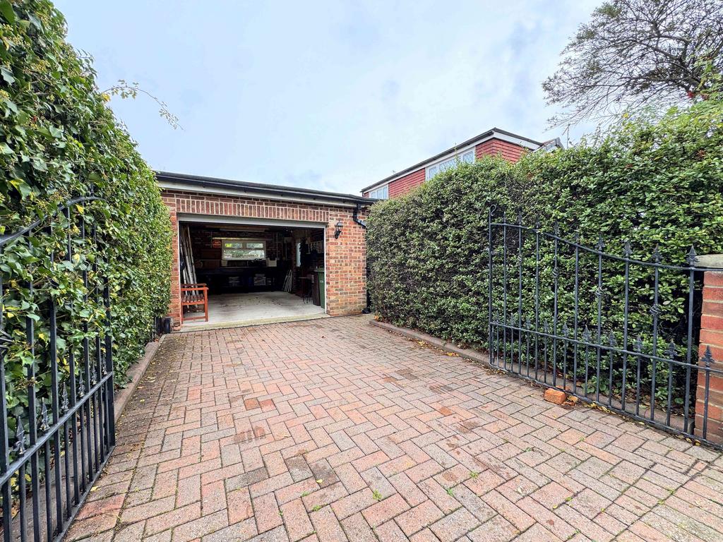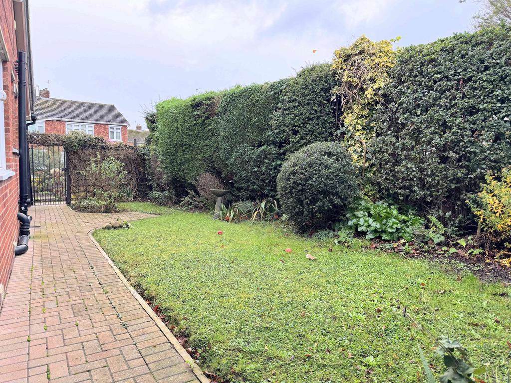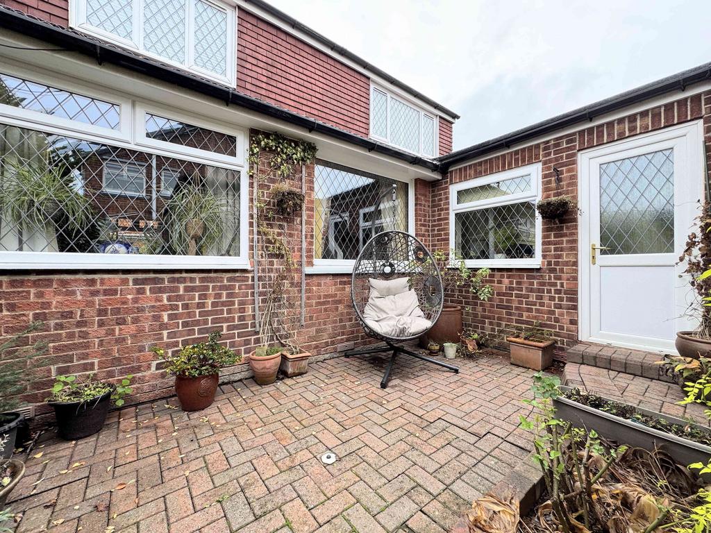 To the front is a block-paved pathway leading to the front door and along the side of the property, complemented by a garden area with planters containing shrubs, plants, and flowers. The side of the house features an additional block-paved garden with planted borders. To the rear is a low-maintenance block-paved garden along with a garage and a block-paved driveway offering parking for one vehicle. The dormer roofs were replaced in 2024.