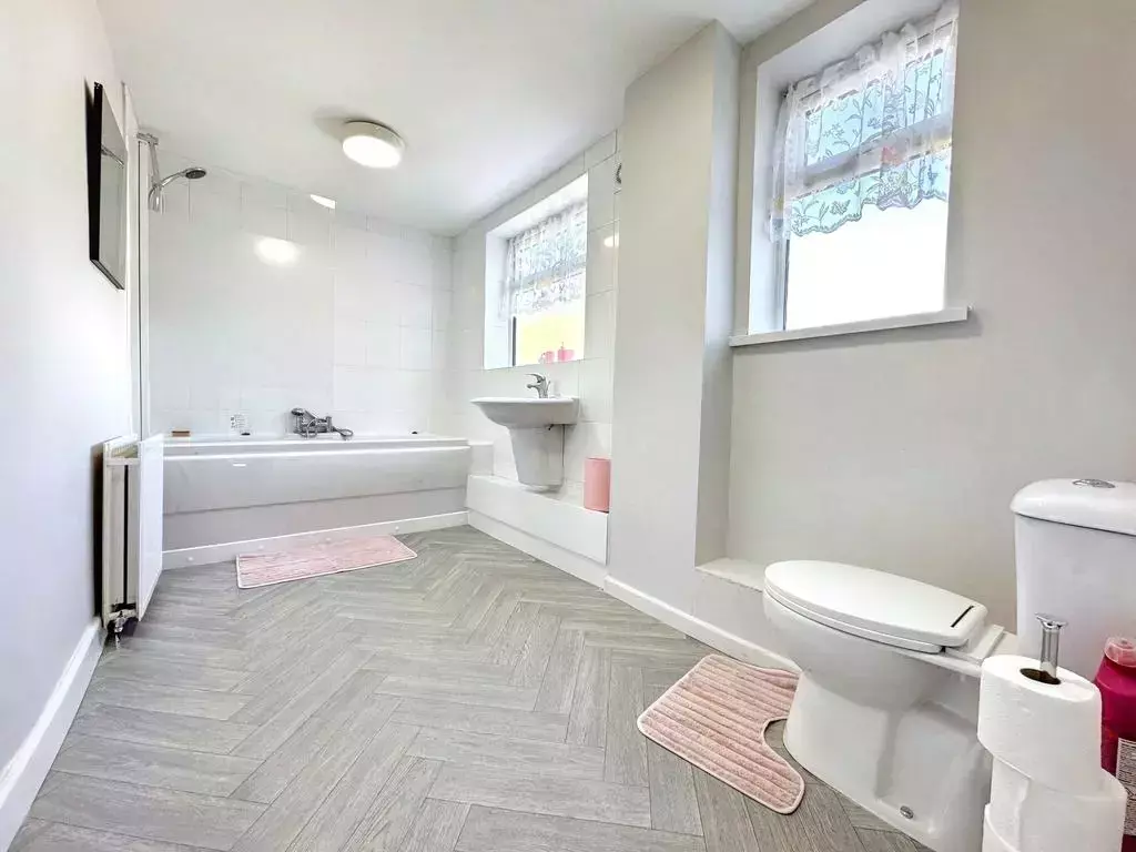 The property comprises a welcoming living space and dining room leading into a sleek, well-equipped kitchen, perfect for modern family living. Upstairs, there are three spacious and well-proportioned bedrooms, complemented by a large, contemporary family bathroom. Additional features include a cupboard in the kitchen with plumbing for a fridge and a garden shed with plumbing for a utility room.