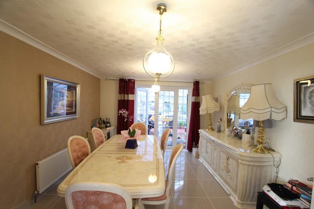 To the front elevation is a sizeable lounge which opens naturally into the first reception room, complete with a gas fire and underfloor heating. This leads into an elegant dining room featuring bi-folding doors, neutral decor, and underfloor heating. The dining space provides access to a large, well-lit L-shaped conservatory, also benefiting from underfloor heating and an air-conditioning unit ideal for year-round use.