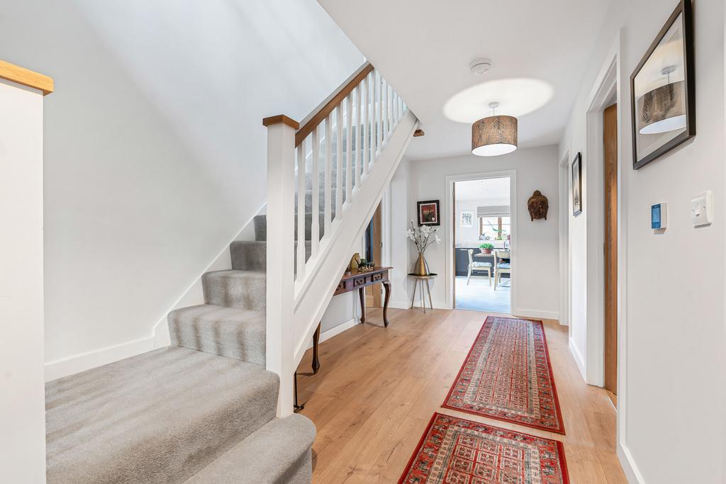 Upstairs the sense of scale continues. All four bedrooms are genuinely spacious doubles, each able to accommodate a king sized bed with plenty of room for freestanding wardrobes, chests of drawers and bedside cabinets without compromising the generous floor area. The principal bedroom enjoys its own ensuite shower room, while the remaining rooms are served by a well appointed family bathroom. A long landing provides useful built in storage and enhances the airy feel of the first floor.