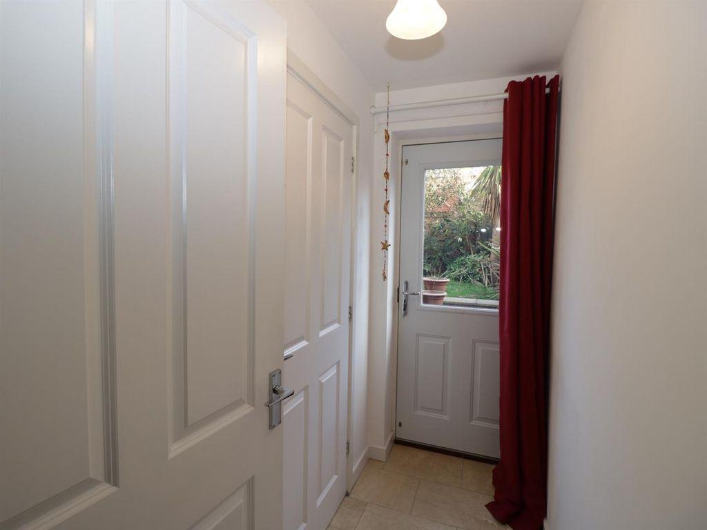 The enclosed rear garden has been landscaped to create a very versatile space with a large patio area with a pergola and grape vine, ideal for a table and chairs. Steps up to lawned area. Small pond. Gated side access. Various shrubs. Behind the property is a single garage with a parking space in front.
