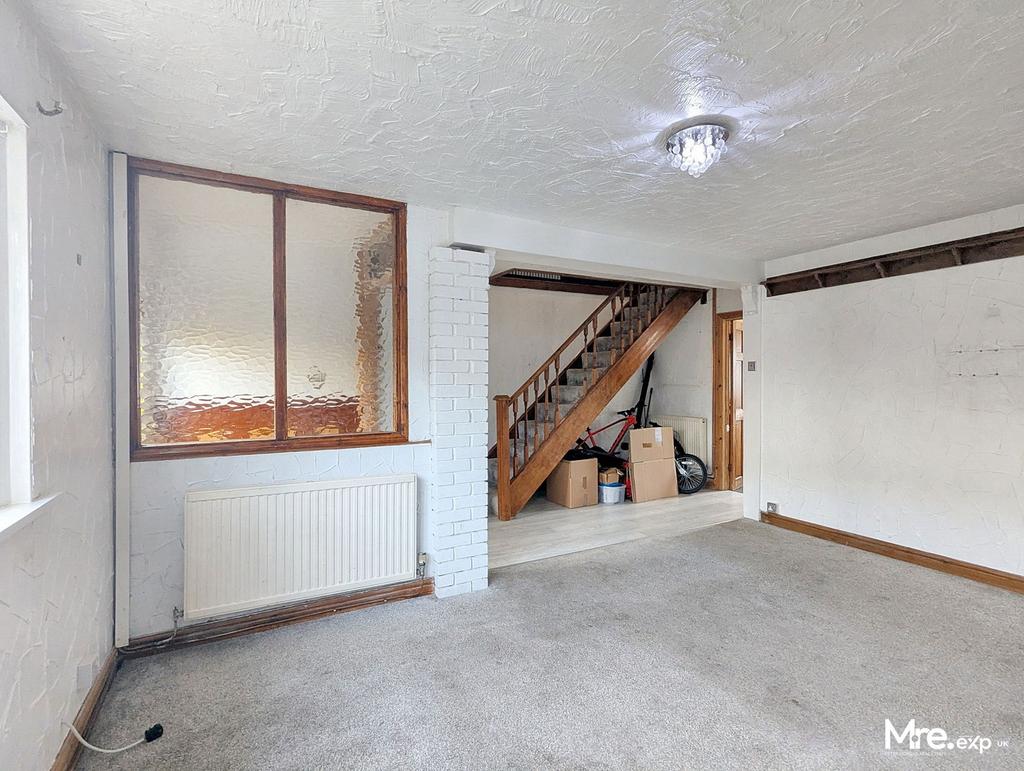 uPVC window to front, carpeted flooring and feature fireplace