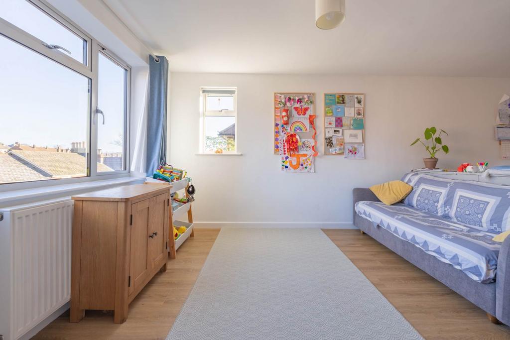 12'0" x 11'0" widening to 13'0". A bright, double-aspect room with rooftop views over Valence Road, Leicester Road, and Prince Edward's Road, and far-reaching views to the South Downs and Lewes Golf Club. Radiator.