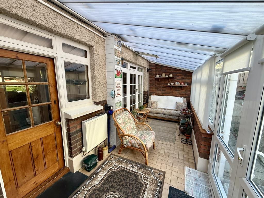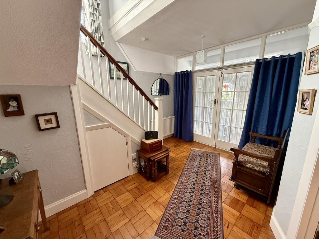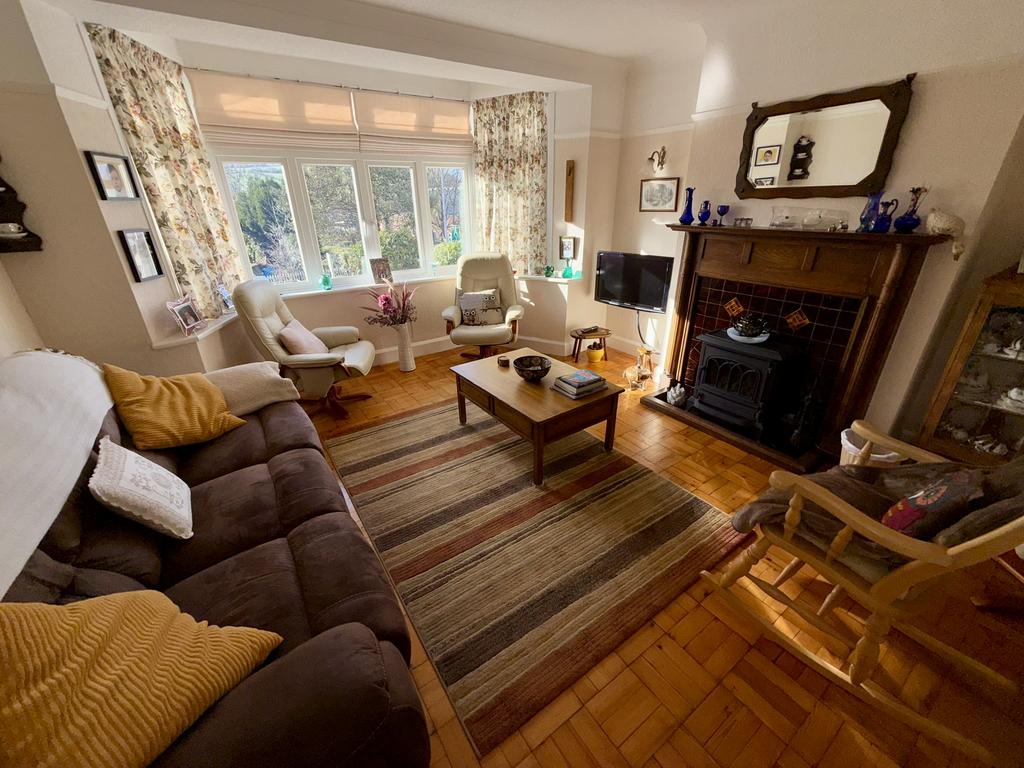 To the rear is a well-apportioned conservatory, providing an inviting space to relax and enjoy views over the garden. Inside, the home is tastefully finished, featuring original parquet flooring, a modern fitted kitchen, and double-glazed bay windows to the front. There are three good-sized bedrooms, making the property perfect for families or those seeking generous living space.