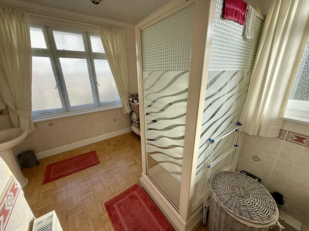 BATHROOMPanelled bath, Glazed shower cubicle with mains operated shower, wash hand basin, pedestal wash hand basin, storage cupboards, tiled splashbacks, secondary glazed window to rear.