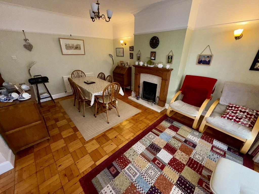 Double glazed bay window to front elevation, gas stove on hearth with tiled fireplace and timber fire surround, double radiator, wall lighting and parquet flooring.