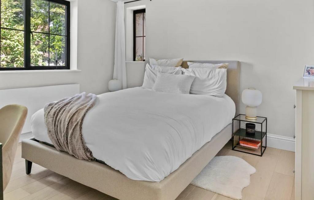 The ground floor also features a luxurious bathroom with bath and separate shower, underfloor heating and a calm, contemporary finish, plus two double bedrooms one to the front, one overlooking the garden.