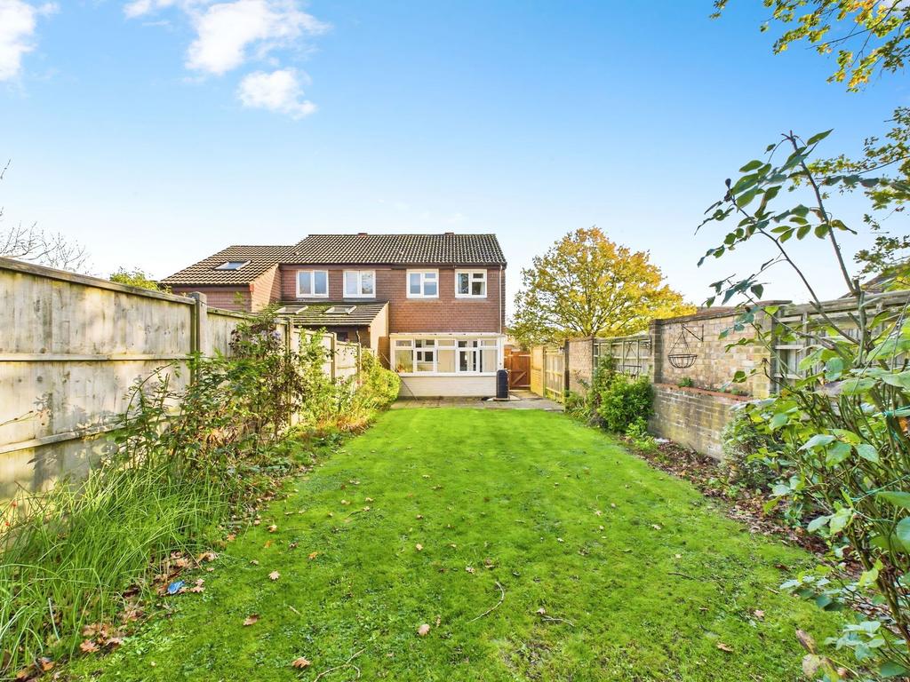 The property is set back from the road and overlooks a large green, with driveway parking and a 17'4 x 8'3 Garage to the side of the adjoining neighbours house. A particular feature of the property is the large Rear Garden, which has a paved patio, that would be perfect for barbecues in Summer months, and leads on to an expanse of lawn with well kept borders. This would be ideal for the children to play or for a keen gardener to enjoy. There is also potential to extend to the rear (stpp) like the neighbouring property.