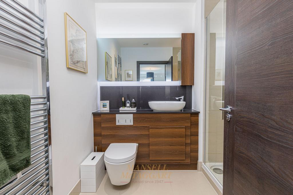 The living accommodation briefly comprises: secure entrance accessible from Queens Walk; communal entrance with a lift to the fifth floor; family bathroom with WC, wash hand basin, heated and backlit mirror, heated towel rail and bath with shower attachment; double guest bedroom; master bedroom with fitted wardrobes and ensuite shower room with WC, wash hand basin, heated towel rail and heated and backlit mirror; open plan living space complete with modern kitchen containing plenty of wall and base level units, Integrated appliances including an eye-level oven and 4 ring induction hob with extractor hood above, fridge/freezer, instant hot and filtered water tap, washing machine and dishwasher, storage cupboard and sliding doors that open up onto the balcony.