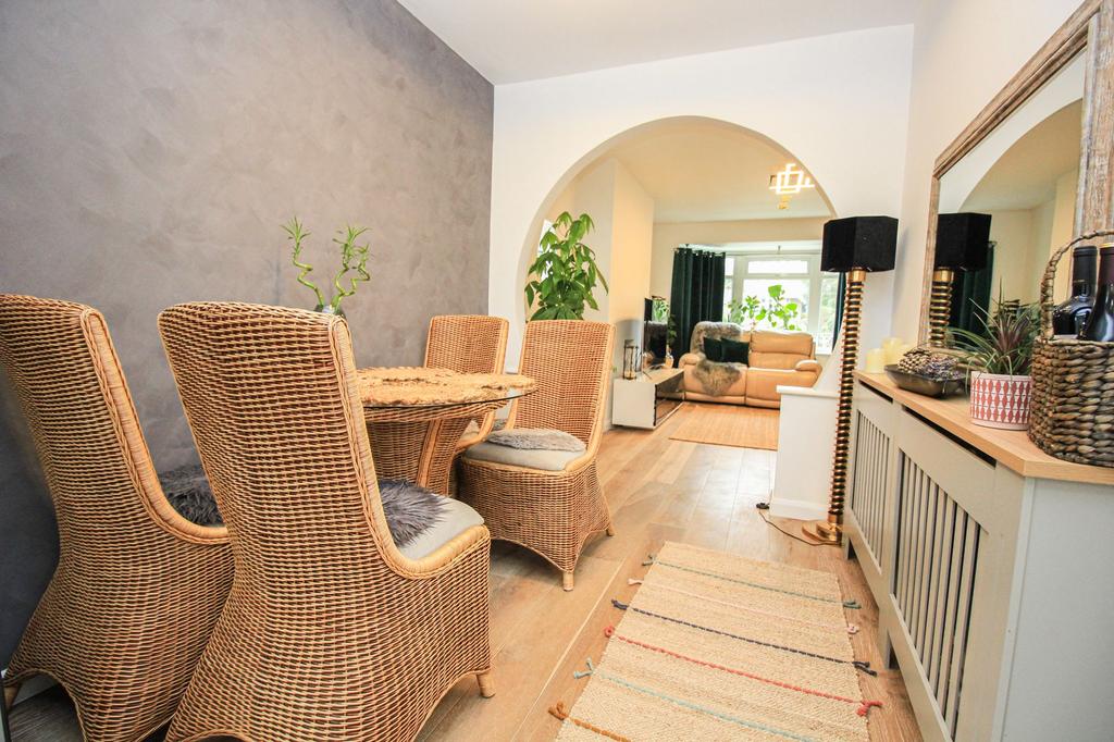 The lounge has a double glazed bay window to the front aspect, two double glazed windows to the side aspect, laid to triple layered laminate flooring and a radiator to one wall. Access opening into the dining area with a continuation of the laminate flooring, a radiator to one wall and access to the kitchen.