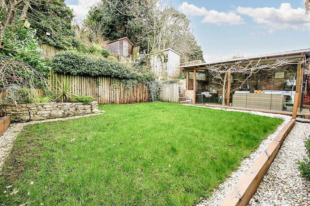 To the front of the property, there is a wonderful frontage mainly laid to lawn with planted borders, a patio and glass balustrade to the front provides access the front door, with a driveway to the side leading to a set of gates, which in turn lead through to a mature south westerly facing rear garden, with a sun room to one side providing an area for seating and adjacent lawned area.