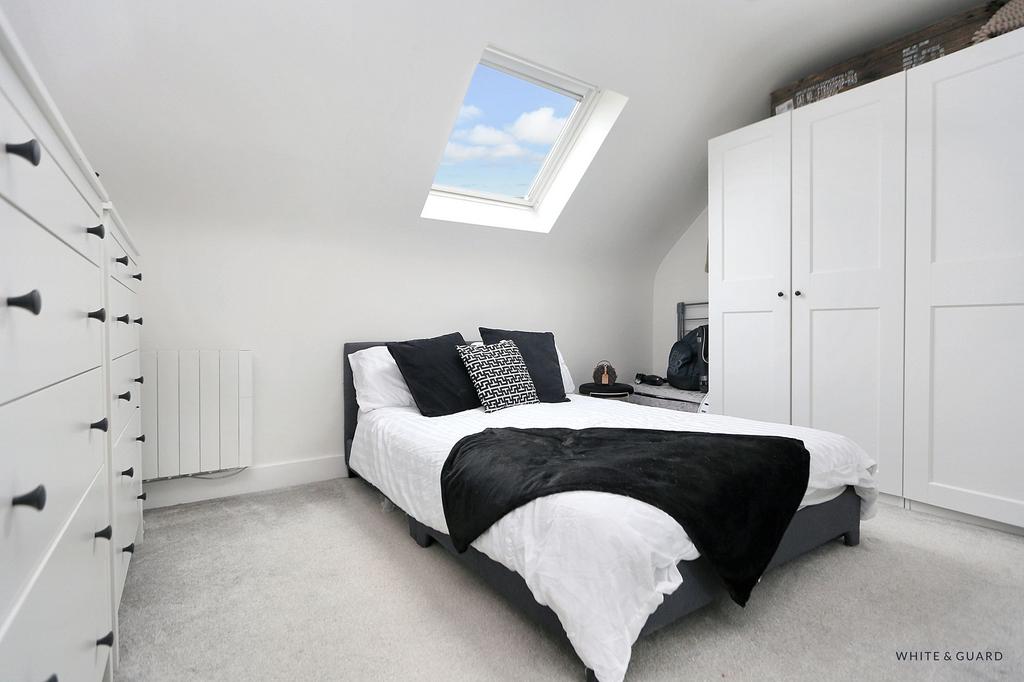 A security intercom system provides access to the communal entrance hall and stairs lead to all floors. Set on the top floor, is Flat 28. The front door to the apartment opens into a hallway which benefits from a fitted storage cupboard and internal oak doors lead to all accommodation. The principal living space is a spacious open plan kitchen living room which has two double glazed sky lights to the rear elevation. The kitchen itself comprises a range of modern wall and base level work units with fitted work surfaces over which incorporate an inset stainless steel sink and drainer, induction hob with electric oven under and cooker hood over. Further integrated appliances within the kitchen include a fridge freezer and washing machine. Creating a degree of separation, the kitchen is laid to wood effect flooring while the lounge is carpeted and allows space for both a living and dining area. A well proportioned double bedroom provides plenty of space for freestanding wardrobes and bedroom furniture and two double glazed sky light windows provide plenty of natural light. The well maintained bathroom suite offers a panel enclosed bath with mains shower over and fitted shower screen, WC, wash hand basin, chrome heated towel rail and attractive tiling to the principal areas.