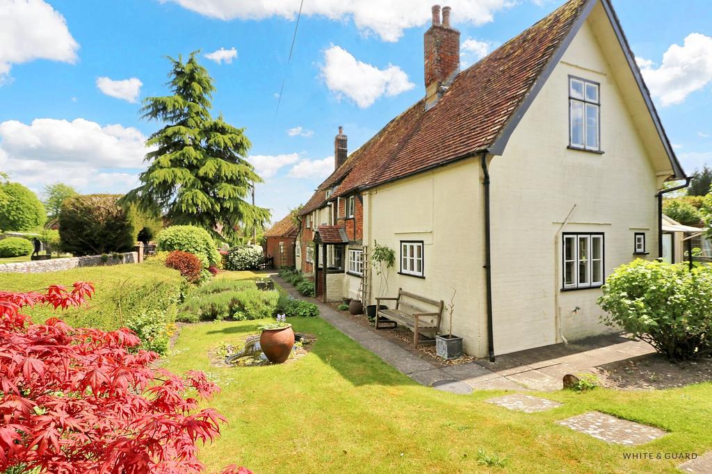This detached, Grade II listed, 16th-century cottage exudes charm and character. Set in the heart of the picturesque village of Exton, directly across from the historic 13th-century church, it offers an array of original features. Initially two thatched cottages, the property was extended and converted into a single, light and spacious house in the 20th century. Well-proportioned accommodation includes a charming reception hall, large sitting room with beamed ceiling, bright kitchen-breakfast room, study and WC. Upstairs are three double bedrooms with part-vaulted ceilings, an en-suite shower room and separate family bathroom. Outside, a detached garage with driveway parking, and established gardens of a sunny south-westerly aspect.