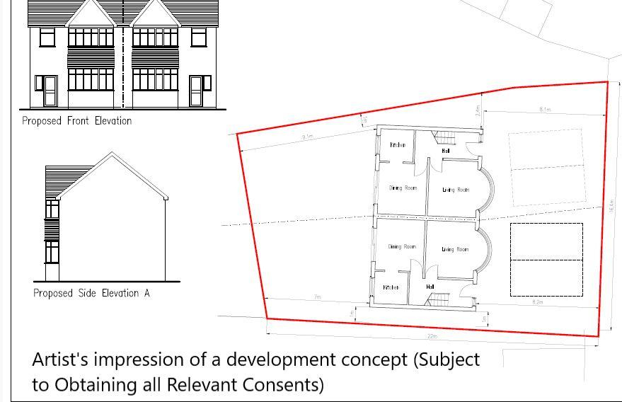 The site area depicted within the plan in the auction particulars is for indicative purposes only. Additionally, any measurements stated may not be exact. Buyers should rely on their own enquiries with regard to precise measurements, any consents or rights over the land and any possible development potential or alternative uses for this site. Some or all of the plot may comprise adopted highway land. Plans have been drawn up for the erection of dwelling. No planning has been approved for this scheme. Auction House London make no representations or warranties with regard to this scheme and/or the validity of the aforementioned plans. Buyers must rely on their own enquiries with regard to any development potential, permissions required and any previous planning history in respect of this site.