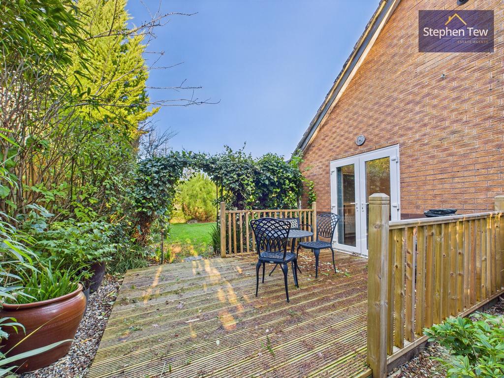 The property excels in offering a superb indoor-outdoor lifestyle, highlighted by a well-maintained, private garden with lush landscaping and multiple outdoor seating areas. French doors from the dining area open onto a decked patio, perfect for alfresco dining or relaxing in the tranquil surroundings. A bright conservatory with hardwood flooring provides panoramic garden views and direct patio access, making it an ideal spot for a home office or additional lounge area. The outdoor space also features a charming stone patio and a spacious lawn, ideal for family activities or entertaining guests. Practical features abound, including off-road parking with a paved driveway, a detached garage for additional storage or secure parking, and a well-kept front garden that enhances the property’s kerb appeal. The two modern bathrooms boast luxurious finishes, such as marble-effect tiles, walk-in shower, and sleek fixtures, offering comfort and style. With its harmonious blend of modern interiors, abundant natural light, and expansive outdoor amenities, this detached house is a truly outstanding opportunity for buyers seeking a stylish and functional home ready to move into.