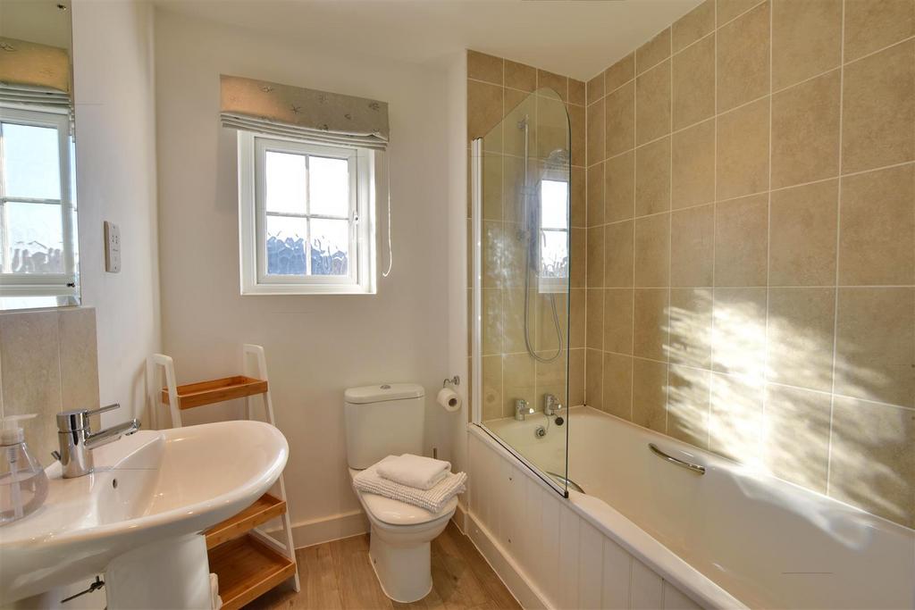 Family Bathroom - 2.01m x 1.91m (6'7 x 6'3) - White suite comprising panel enclosed bath with shower and screen over, pedestal wash hand basin, low level wc, heated towel rail, window to the front.