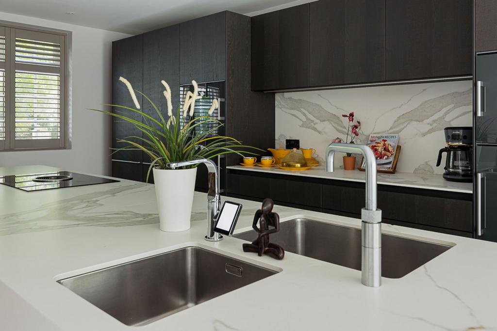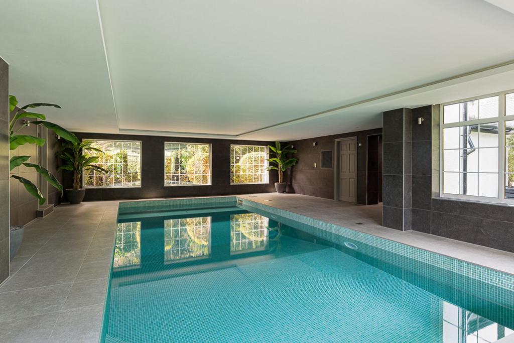 Internally, the property is approached through a bright and welcoming entrance hall which leads to a formal lounge highlighted by a striking 19th-century marble fireplace, a formal dining room, and a downstairs cloakroom. The contemporary open-plan kitchen with Gaggenau appliances features a central breakfast island and living area, which flows seamlessly into the sun room and sitting room. Further accommodation to the ground floor includes a utility room and an impressive heated swimming pool suite, complete with changing facilities, plant room, and patio doors opening directly onto the rear gardens.
