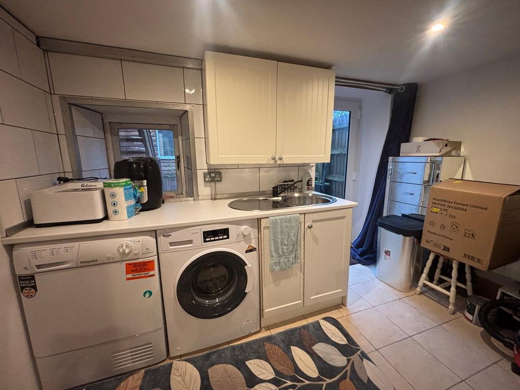 19' 5" x 13' 5" (5.92m x 4.09m). Recently upgraded and approached via a painted staircase from the Living Room. This room provides an ideal studio, home office or potential as a 3rd bedroom. It currently offers a utility area with a stainless steel single sink unit, base and wall cupboards, space for an automatic washing machine and tumble dryer, fully glazed rear entrance door, understairs storage cupboard, tiled/laminate flooring.