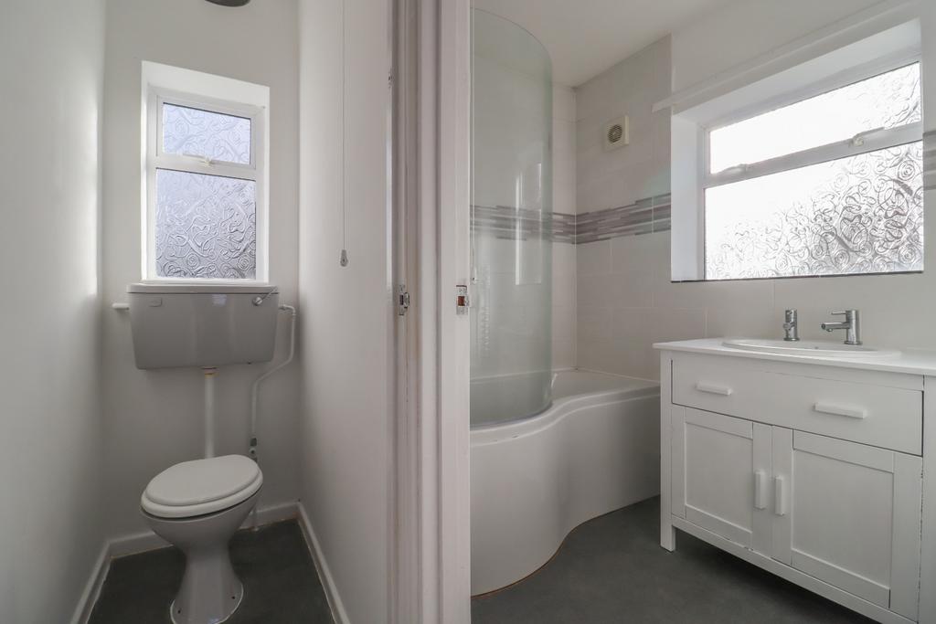 Upstairs, there are two well proportioned double bedrooms, with the master bedroom benefiting from a built-in wardrobe. The bedrooms are served by a bathroom featuring a bath with shower over and a hand basin, as well as a separate WC.