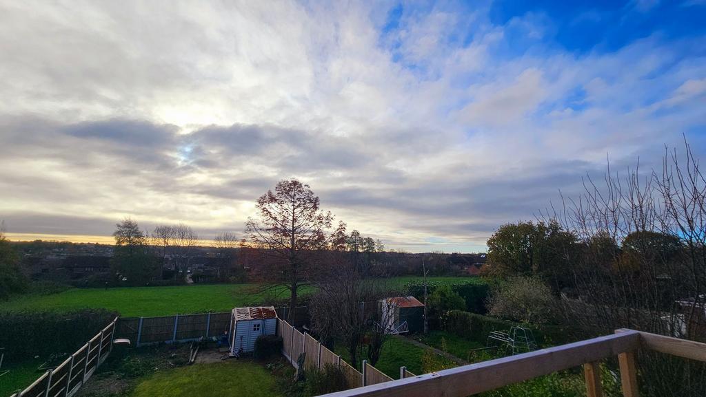 To the rear a decked area for seating and entertaining, steps down to a area laid to lawn, hardstanding area for the garden shed, and fencing surrounding the boundary with open field aspects to the rear.