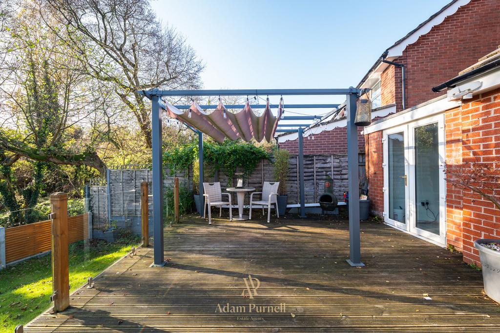The rear garden is a beautiful countryside retreat, with raised decking and pergola, lawn, and views over woodland. There is double French doors leading into a useful storage area.