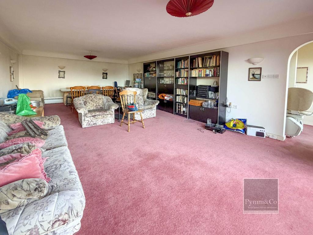 Outside, off-road parking is provided via a shared access driveway with the neighbouring property. To the front, a lawned area sits to the left of the house and leads around to a sheltered courtyard at the rear. From here, steps rise to a further elevated lawn, culminating in a remarkable seating area positioned higher than the roofline of the house itself. From this vantage point, you can enjoy what must be considered one of the finest views over Sheringham and its coastline a truly special outlook and a rare feature in any property.