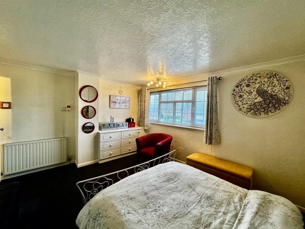 A very spacious room featuring a UPVC double-glazed window to the front aspect, comfortable carpeting, and pendant lighting. The room benefits from built-in cupboards, a wardrobe, and a matching chest of drawers, offering generous storage throughout.