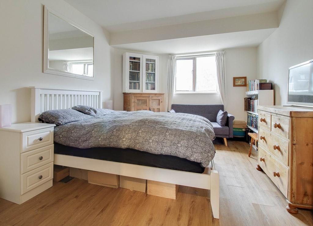 15'2 x 10'4. Window with secondary glazing overlooking St Thomas à Becket Church. Radiator.