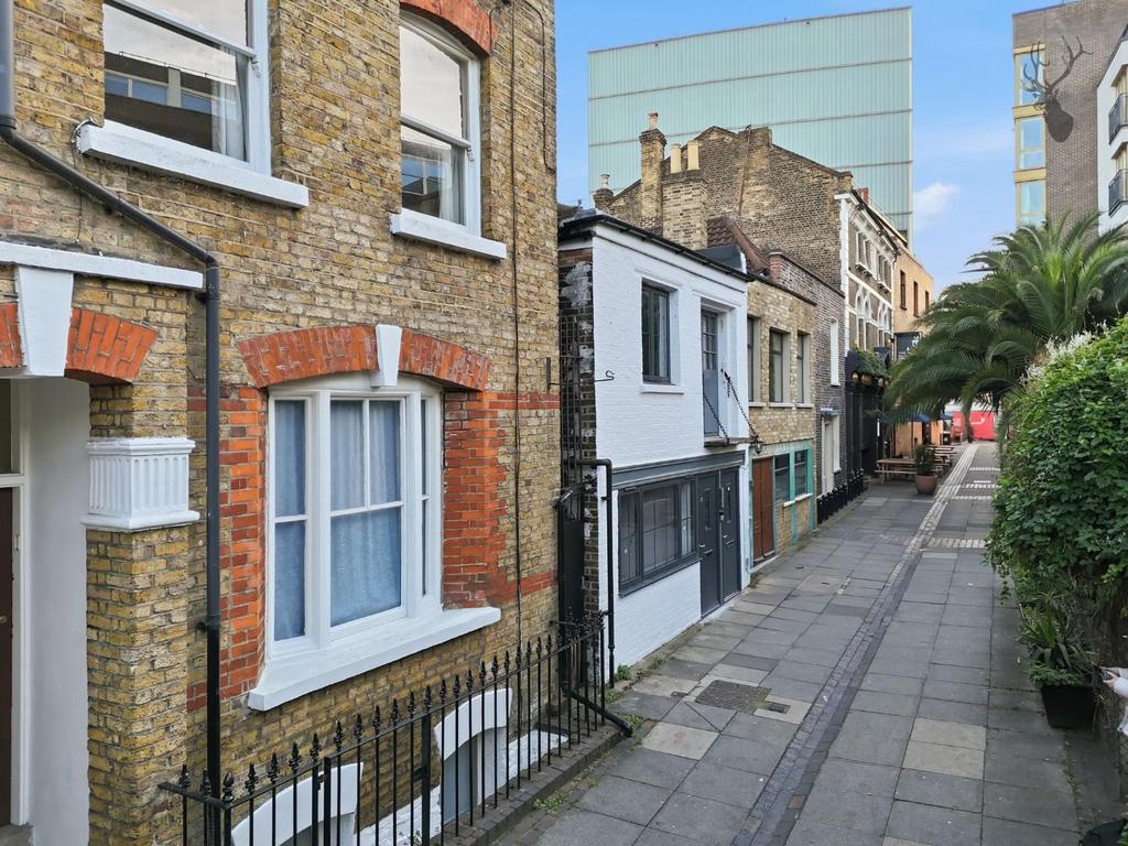 Primely positioned on a quiet, pedestrianised mews in the very heart of Central Hackney is this charming lateral conversion, occupying the first floor of a characterful period residence. This beautifully arranged home enjoys an abundance of natural light and boasts an expansive private roof terrace, a rare luxury in such a sought-after urban setting.