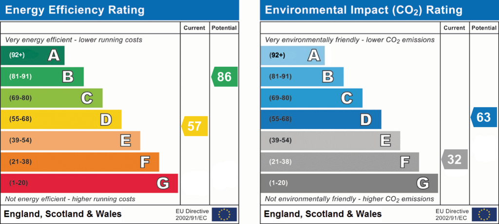 Stepping inside, the hall entrance is light and bright and benefits from wood flooring underfoot for ease of cleaning, plenty of space is available for storing coats and shoes. To the left, the open-plan 21’ sitting and dining room can be found. This space is flooded with natural light from large uPVC double glazed windows overlooking the properties frontage and the meadow views beyond, with an inset woodburner to the centre of the room. w Laminate wood effect flooring can be found beneath and continues to the dining room, with ample space for a formal dining table and further space currently utilised with a desk. Moving through the property to the fully fitted kitchen, offering herringbone wood effect vinyl flooring and a range of newly refitted wall and base storage cupboards. Integral oven, hob, extractor, microwave, fridge, freezer and dishwasher can also be found. The other end of the kitchen offers a useful uPVC double glazed porch offering electrics for further white goods, storage and providing access to the rear garden.