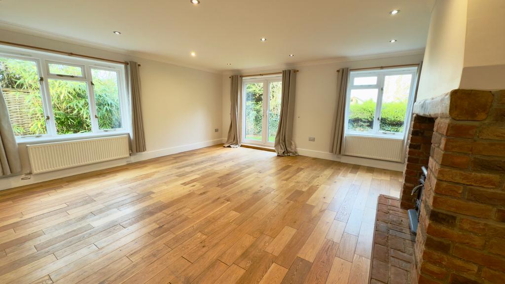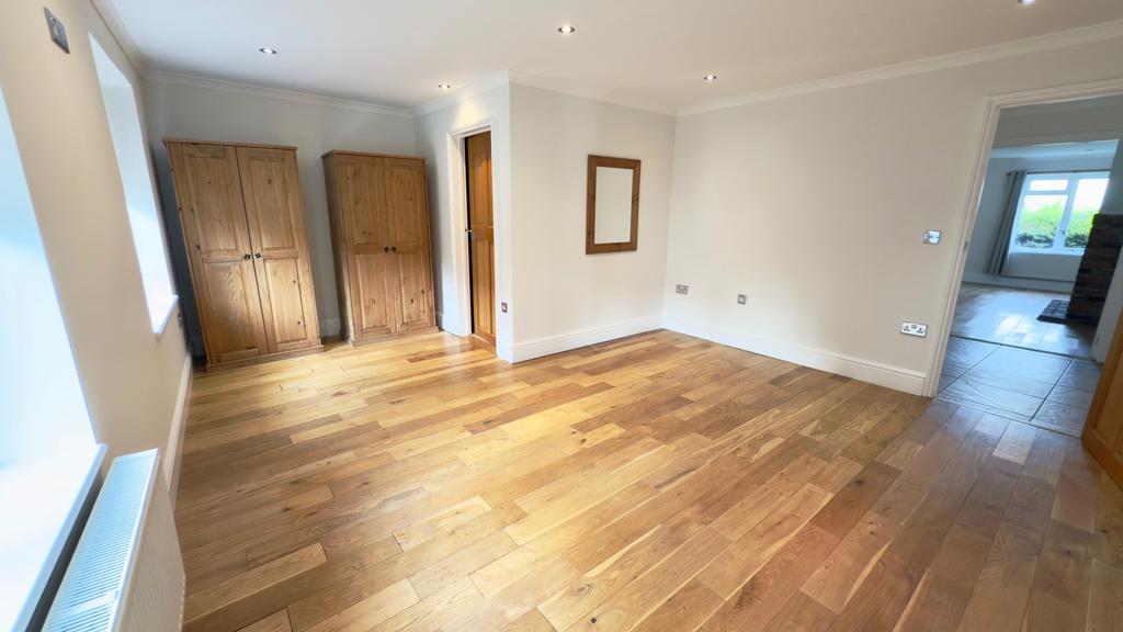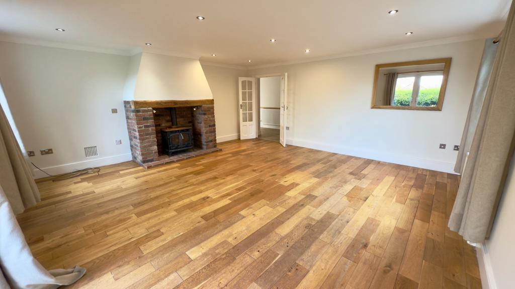 Double-glazed window to the side and rear. French doors. 2 Double radiators. Recessed spot lights. Fireplace with log burner. Oak floor.