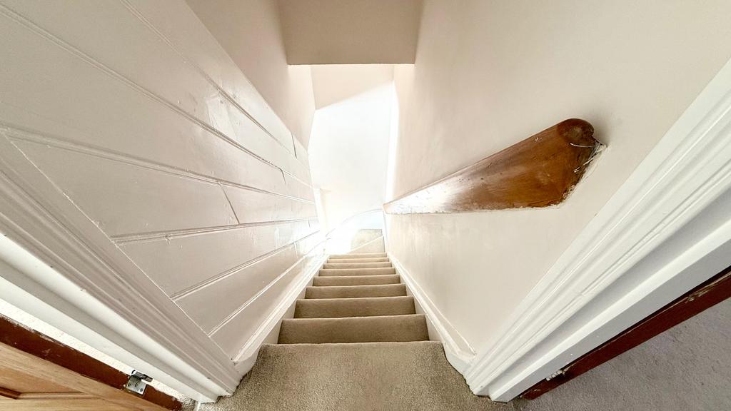 Stairs leading to the first floor. Double-glazed window to the rear elevation. Double radiator. Feature brick fireplace